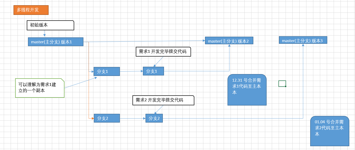 几乎所有的版本控制系统都以某种形式支持分支。 使用分支意味着你可以把你的工作从开发主线上分离开来,避免影响开发主线。多线程开发,可以同时开启多个任务的开发,多个任务之间互不影响.
