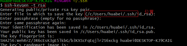 会默认用户目录 .ssh 目录生成一个默认的id_rsa文件 和id_rsa.pub